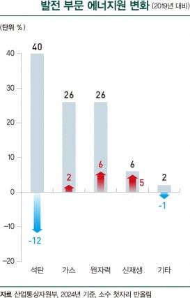 발전원별로는 원자력(31.7%)이 18년 만에 1위 자리를 탈환했고, 이어 가스(28.1%)와 석탄(28.1%) 순이었다. 신재생에너지는 발전량 기준으로는 여전히 4위지만 발전 증가율(11.7%)은 다른 에너지원보다 가장 높았다. 반면 석탄은 발전량이 9.6% 감소하면서 17년 만에 3위로 밀려났다. 정부의 석탄 감축 정책, 연료비 상승, 기저전원 교체 등이 복합적으로 작용한 결과다.