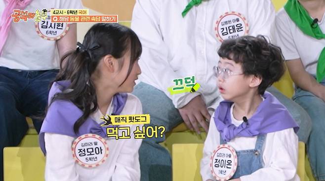 앞서 이날 김미려는 간식 획득을 두고 동물 관련 속담 말하기 게임을 진행, 이때 이온 군은 "핫도그 먹고 싶냐"는 누나 정모아의 말에 고개를 끄덕이며 설렘 가득한 표정을 지었다.