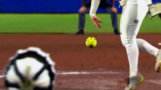 미국 대학 소프트볼에서 나온 진기한 장면입니다.