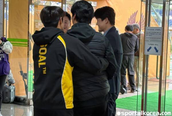 박태준은 인터뷰를 끝낸 후 누군가를 향해 달려가 꼭 안겼다. 다름 아닌 김천 정정용 감독이었다. 치열한 맞대결에 앞서 애써 등을 돌리던 정정용 감독도 제자의 애교에 이내 품을 내줬다. 두 사람은 밝게 웃으며 훈훈한 대화 몇 마디를 주고받았다.