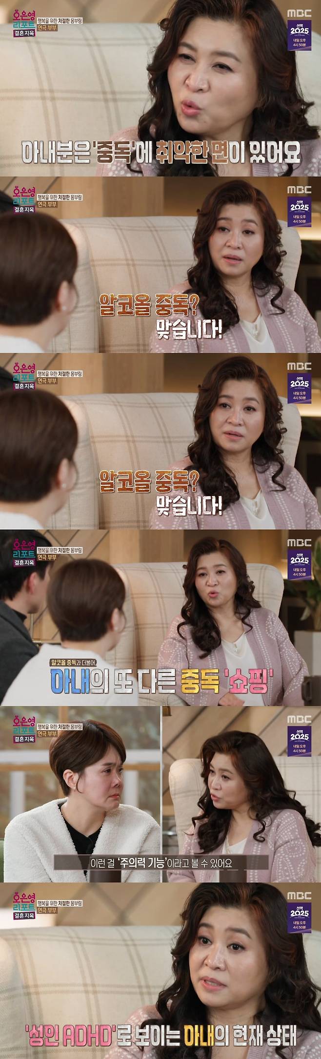 오은영, 성인 ADHD 아내에 '알코올·쇼핑 중독' 판정…"중독에 취약, 주의력 기능에 문제 있어" (결혼지옥)[종합]