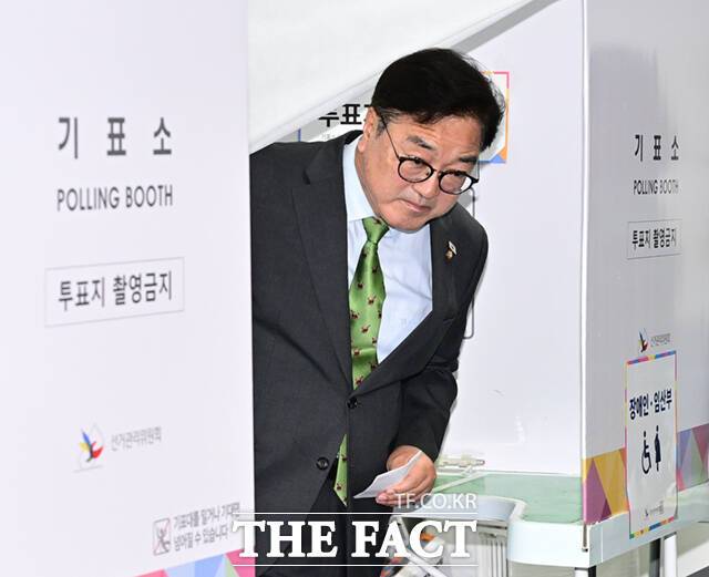 한 표 행사한 우원식 "대한민국, 혼란 딛고 민주화된 사회로 나아가길" [TF사진관]