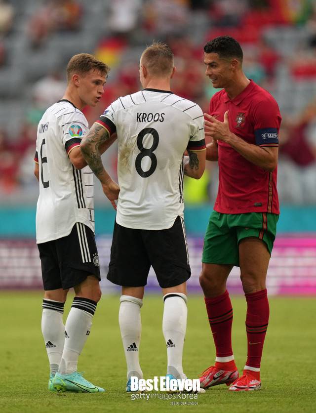 여기서 키미히는 포르투갈 캡틴 호날두와 관련된 질문을 받았다. 키미히는 "크리스티아누가 A매치 220경기를 뛰며 136골을 넣었다고 들었다. 정말 긴 여정을 통해 만든 결과다. 특히 꾸준함 면에서 그의 기록은 경이롭다. 20년 넘게 최고 수준에서 뛰며 포르투갈을 위해 싸웠다. 나는 이제 겨우 100경기인데도 벌써 자랑스럽다"고 반응했다.