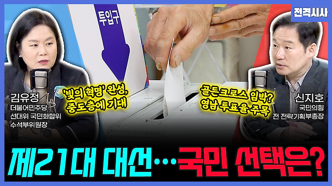 [전격시사] 제21대 대선…국민 선택은? (김유정) ‘빛의 혁명’ 완성, 중도층에 기대·(신지호) 골든크로스 임박? 영남 투표율 주목
