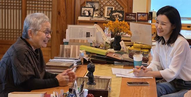 열린 문틈 사이로 교수님의 한 평 남짓한 방도 보였다. 오직 집필만을 위해 마련된 작은 공간이, 마치 괴테가 긴장을 놓지 않고 쉼 없이 글을 쓰고자 마련했던 자전거 안장 의자처럼 느껴졌다. 책이 가득 쌓인 긴 나무테이블을 사이에 두고 선생님과 마주 앉았다. 언젠가 좋은 어른이 되고픈 소망을 품고, 그 길을 찾을 지혜를 얻고자 질문을 시작했다.