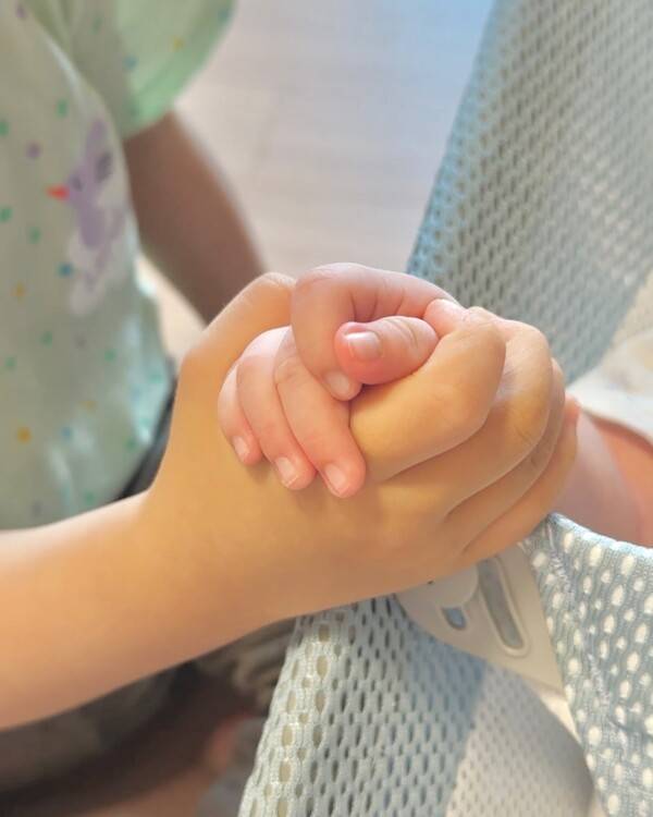 사진에는 아기 침대에 누워 있는 나혜미의 둘째 아들의 모습이 담겼다 나혜미는 또 두 아들이 고사리 같은 손을 맞잡고 있는 사진을 게시했다.