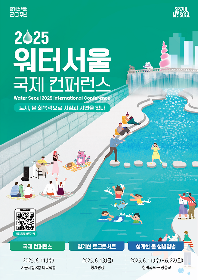 물 순환과 수변 공간을 통한 도시 회복력 강화 방안을 모색하는 '2025 워터 서울 국제 컨퍼런스', 오세훈 시장이 참여하는 청계천 토크 콘서트도 개최한다.