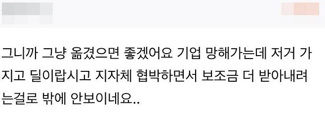 이진만 NC 대표이사가 "연고지 이전을 고려하겠다"는 초강수 발언을 전한 가운데, 특정 공무원 커뮤니티에 올라온 NC를 향한 저격글이 논란에 올랐다.