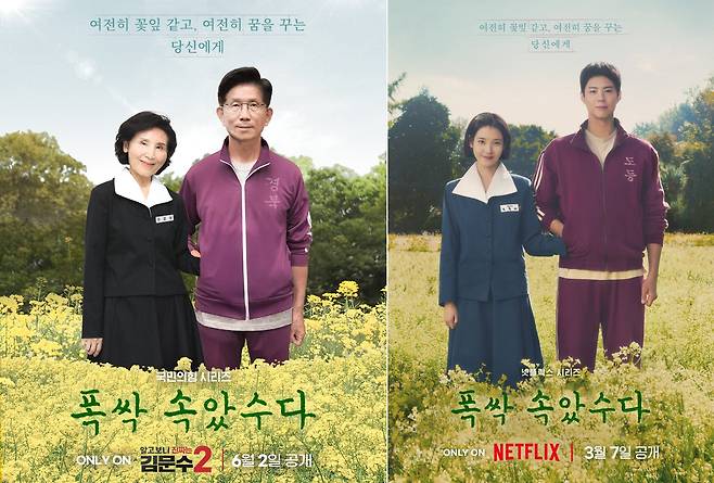 여기에 '넷플릭스 시리즈'를'국민의 힘 시리즈'로 변경했다. '폭싹 속았수다 6월 2일 대공개'라고도 적었다. "여전히 꽃잎 같고, 여전히 꿈을 꾸는 당신에게"라는 문구는 그대로 사용했다.
