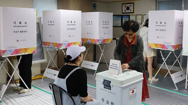▲ 제21대 대통령 선거일인 3일 새벽 인천 남동구 석천경로당에 마련된 간석4동 제2투표소에서 유권자들이 투표하고 있다.