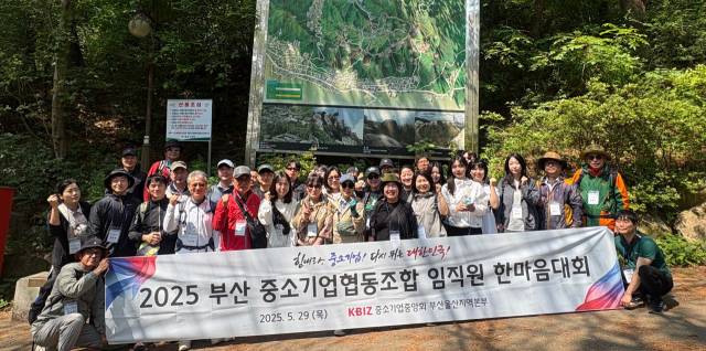 중소기업중앙회(부산울산회장 허현도)는 지난달 29 부산 중소기업협동조합 임직원 50여 명을 대상으로 관내 협동조합 임직원과의 정보 교류, 조합 사이의 네트워크 강화를 목표로 ‘2025 부산 중기협동조합 임직원 한마음대회’를 부산 금정산 일원에서 개최했다.