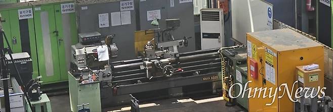 | ▲ 3일 태안화력 비정규직 사망사고 대책위가 고 김충현씨가 일했던 사업장 현장을 방문했다. 사진은 고 김충현씨가 사용했던 기계. |