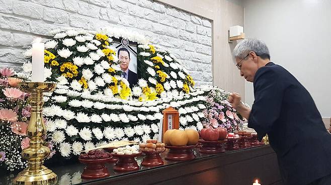 ▲ 권영국 민주노동당 대선후보가 충남 태안화력발전소에서 작업 중 숨진 하청 근로자 고 김충현(50) 노동자 빈소를 3일 찾아 조문하고 있다.
