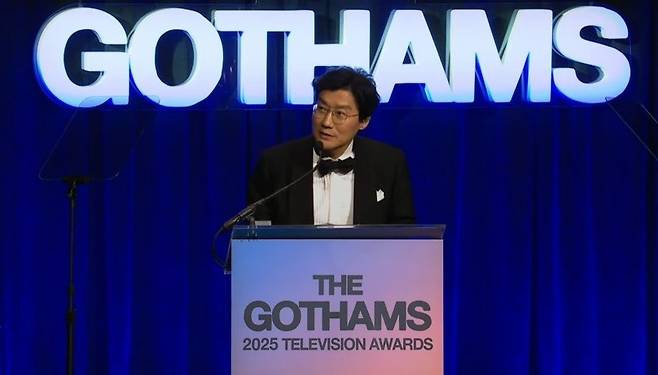 황동혁 감독은 "고담 어워즈'는 제가 '오징어 게임'으로 참석한 첫 시상식이었다. 지난 2021년 뉴욕 바로 이곳에서 '획기적인 시리즈-장편부문'을 수상했다"고 떠올렸다.