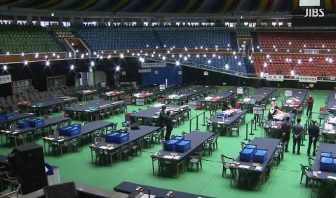 제주시는 8열, 서귀포시는 4열로 동시에 투표함을 개함합니다.