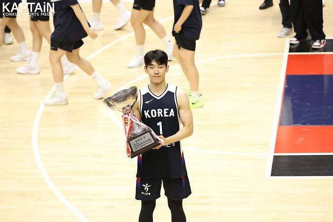 건국대 KAPTAiN 강서현 편집장 건국대학교 김준영(182cm, G)이 제48회 한일 대학선발 농구대회에서 우승컵을 들고 돌아왔습니다. 첫 태극마크를 단 김준영이었습니다. 1차전(5/16) 경기 직후 그는 “경기 초반에 긴장한 면이 없지 않아 있었다"라는 솔직한 소감을 드러냈습니다.