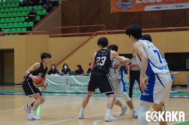 단국대는 이날 이상백배 라인업을 베스트 5로 구성해 강원대를 상대했습니다. 개막 6연승, 단독 1위지만 백지은 감독은 경기 후 “이겼지만 만족할 수 없는 경기다”라는 코멘트를 남겼습니다. 베스트 5와 헤드 코치가 오랜 기간 팀을 떠나있던 탓에 단국대의 팀 컬러를 살리지 못했던 경기였기 때문인데요.