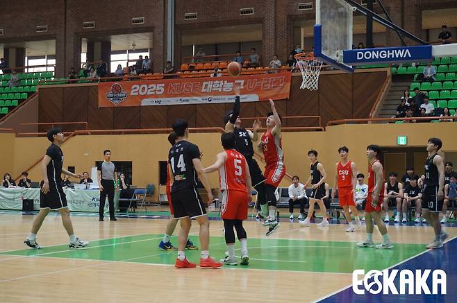 U-리그는 3주간의 휴식기에 들어갔지만, ‘제48회 이상백배 한일 대학대표 농구대회’에 김현국 감독과 우상현 선수가 참가했습니다. 김현국호는 2승 1패를 기록, 우승을 차지했습니다. 김현국 감독은 장신 포워드를 적극 활용한 농구를 하겠다고 밝혔고, 실제로 제공권 우위를 통해 승리를 가져왔습니다. 경희대 주장 우상현은 수비와 헌신적인 플레이로 팀의 우승을 도왔습니다. 김현국 감독은 오는 7월에 ‘2025 라인 루르 하계세계대학경기대회’에도 감독으로 출전합니다.