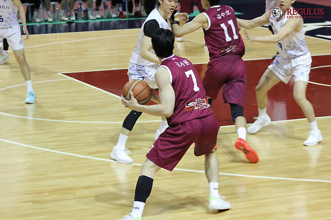 경희대 레굴루스 이경민 편집장 경희대는 5월 7일, 한양대와의 시즌 두 번째 맞대결에서 56-64로 아쉽게 패배했습니다. 경기 초반 김서원의 활약으로 앞섰던 경희대지만, 이후 공격의 활로를 찾지 못하고 역전당했습니다. 주춤했던 것도 잠시, 경희대는 4쿼터 들어 임성채가 스틸과 슛을 통해 재역전에 성공했습니다. 하지만 결국 경기 막판 공격 마무리에서 어려움을 보이며 승리를 내줬습니다.