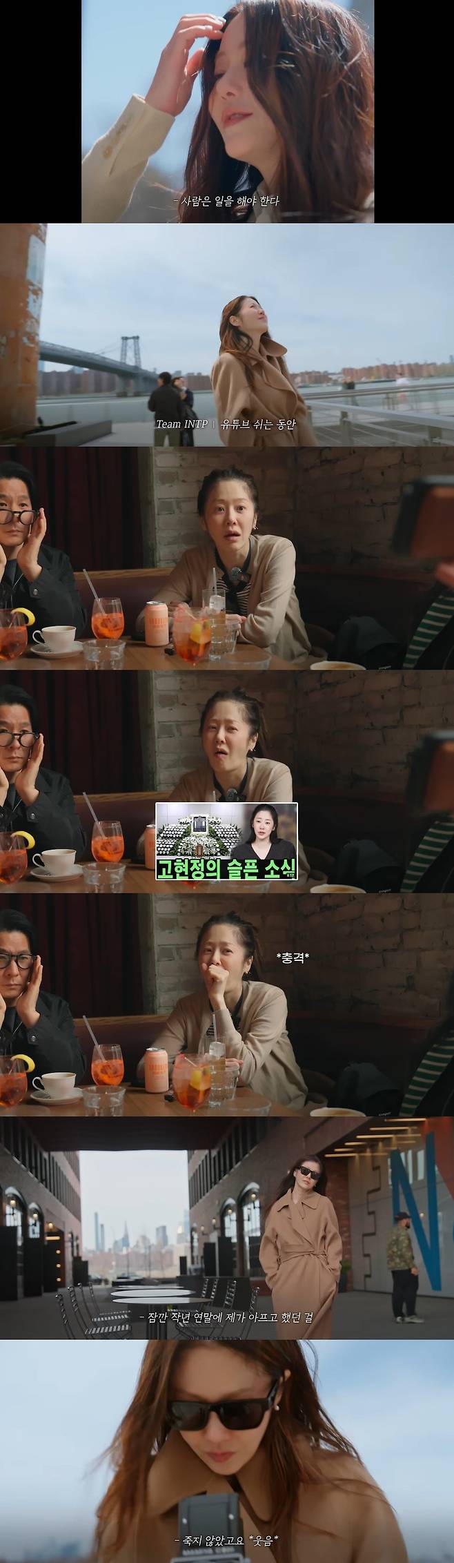 한 카페에 들어가 일행들과 함께 차를 마시던 고현정은 "유튜브 쉬는 동안 '고현정 사망설'이 돌았다"라는 스태프의 말에 "나도 봤어, 나 너무 무서웠어"라고 답했다.