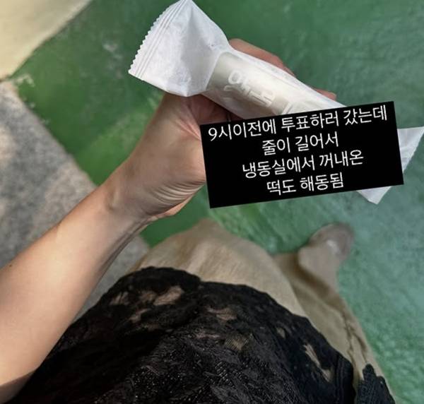 무엇보다 시선을 끈 건 투표 인증보다 더 현실감 넘치는 ‘떡 디테일’이었다. 이와 관련해 이하정은 “9시 전에 투표하러 갔는데 줄이 너무 길어서 냉동실에서 꺼낸 떡이 해동됐다”고 전해 보는 이들의 웃음을 자아냈다.