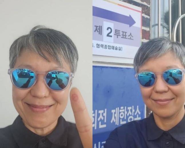 가수 이은미는 앞서 배우 이기영, 이원종 등과 함께 이재명 더불어민주당 21대 대선 후보를 공개적으로 지지해왔다. 이를 반영하듯 3일 올린 투표 인증샷 속 그는 파란색 선글라스 등 이재명 후보 상징 색깔 아이템을 착용한 모습으로 이목을 끌었다.