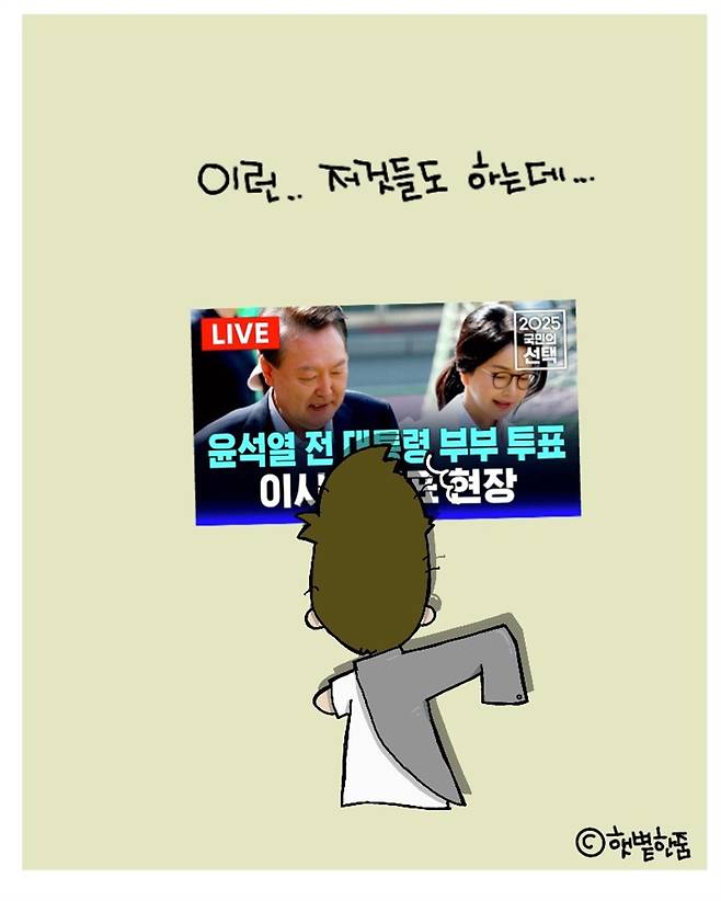 - [오마이포토2025] 투표소 선거운동 안되는데 '김문수' 풍선 들고 온 지지자들