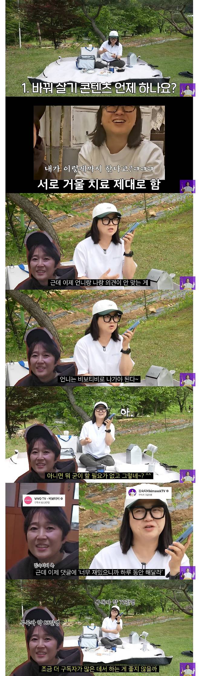 송은이에게 전화를 건 김숙은 해당 콘텐츠를 할 생각이 있냐고 물었고, 송은이는 "할 수 있지"라면서도 "'비보티비'로 내야지. '비보티비'에서 하게 되면 하고 아니면 뭐 굳이 할 필요가 없고 그렇네"라고 덧붙였다.