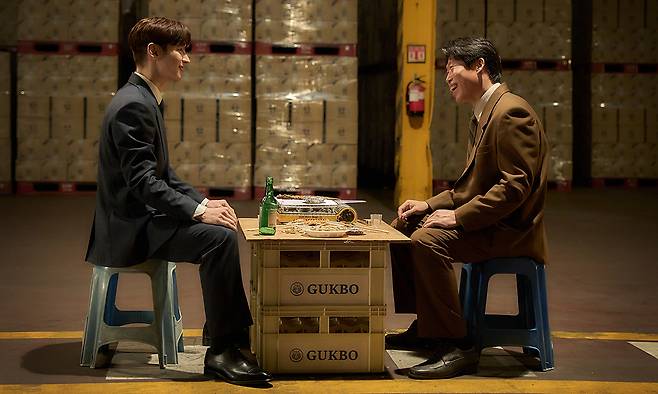 ‘소주전쟁’은 1997년 말 외환위기로 파산 직전에 놓인 ‘국민 소주’ 기업 국보를 집어삼키는 자본의 계략을 보여주는 영화다. 회장 석진우(손현주)의 문어발식 계열사 확장 탓에 경영 위기를 맞은 국보그룹. 화의신청이 수용돼 석 회장의 경영권을 지키고 5년 후 원금을 상환하는 조건으로 생명을 연장하지만, 뉴욕 기반 글로벌 투자사 솔퀸의 먹잇감이 된다. 영화는 회사를 지키려는 국보그룹 재무이사 종록(유해진)과 솔퀸 직원 인범(이제훈)이 이끌어간다. 실제 IMF 시기 진로그룹 인수전을 모티브로 극화했다.