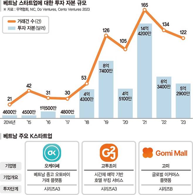 한국에서는 낮선 이름이지만 베트남 현지에서는 아주 익숙한 △오케이쎄(OKXE·중고 오토바이 매매 플랫폼) △고투조이(Go2Joy·숙박 예약 서비스) △고미(GOMI·이커머스)는 한국형 플랫폼들이 선봉에 섰다. 이들은 현지에서 연이어 투자를 유치하며 몸집을 불리는 등 베트남 진출을 목표로 하는 스타트업들의 '교본'으로 자리매김하고 있다.
