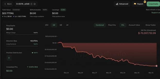 최근 가상자산(암호화폐) 커뮤니티를 충격에 빠뜨린 소식이 전해졌다. 제임스 윈(James Wynn) 이라는 익명의 트레이더가 탈 중앙화 가상자산 거래소 하이퍼리퀴드(Hyperliquid)에서 40배 레버리지로 구축한 11억 달러(약 1조 5000억원) 규모의 비트코인(BTC) 롱 포지션이 청산 위기에 처했다는 것이다.