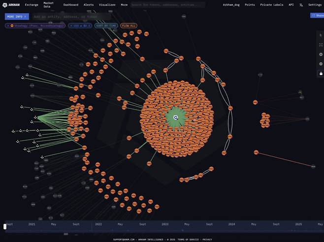 하지만 세일러의 이런 신중한 접근에도 불구하고, 블록체인 분석 플랫폼 아캄(Arkham Intelligence)은 점진적으로 회사의 비트코인 보유량을 추적해나갔다. 2024년 2월에는 스트래티지 비트코인 보유량의 98%를 식별했다고 발표했고, 2025년 5월에는 추가로 70,816 BTC를 발견해 총 525,047 BTC(약 545억 달러)를 추적했다. 이는 회사 전체 보유량의 87.5%에 해당한다.