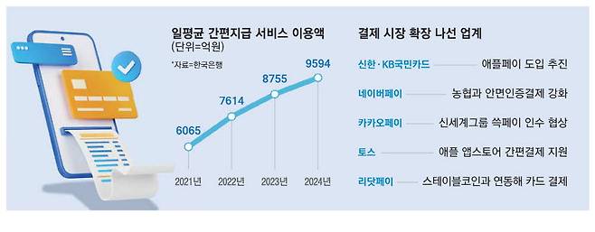 네이버와 카카오 등 국내 플랫폼 업체들도 은행·카드 등 금융사와 손잡고 적극적으로 고객 기반을 넓히고 있다. 최근엔 스테이블코인(원화·달러 등 법정 화폐 가치와 연동된 가상자산) 기반 결제까지 가세하며 시장 주도권을 쥐기 위한 경쟁에 나섰다. 간편결제 시장은 지난해 하루 평균 9594억원 규모로 사상 최대를 기록했다. 앞으로도 더 늘어날 것이란 게 일반적인 관측이다.