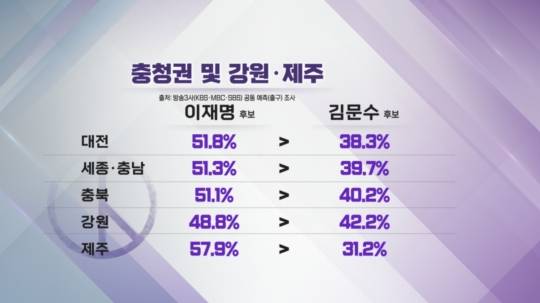 이재명 후보가 김문수 후보를 크게 앞선 것으로 나타났습니다.