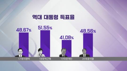 지난 대선에서는 윤석열 전 대통령이 48.56%의 득표율을 냈습니다.
