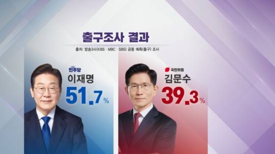 이재명 51.7%·김문수 39.3%…방송3사 출구조사