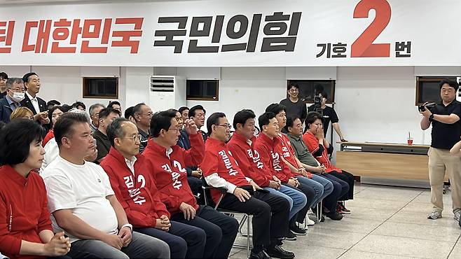 국민의힘 주호영 공동선대위원장과 추경호 전 원내대표, 김상훈 정책위의장 등은 대구 지역 국민의힘 국회의원들은 저녁 7시 50분쯤 개표상황실에 도착했습니다.