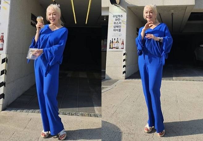 이날 박해미는 상의와 하의를 모두 파란색으로 통일한 ‘올블루’ 스타일링으로 등장했다.