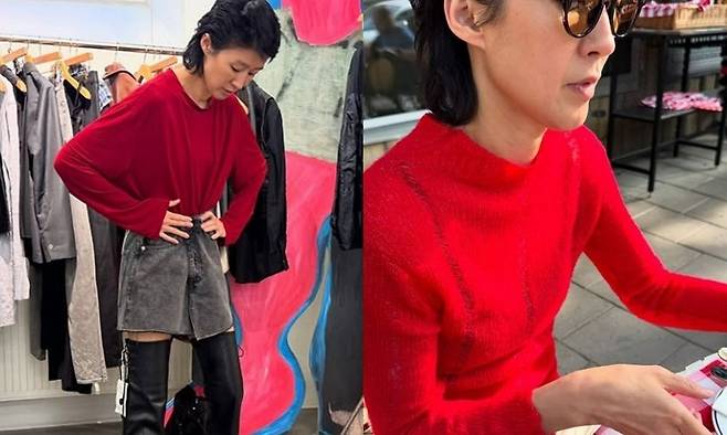 영상에는 한 카페 앞에서 커피잔을 손에 쥐고 다채로운 포즈를 취하는 박해미의 모습이 담겼다.