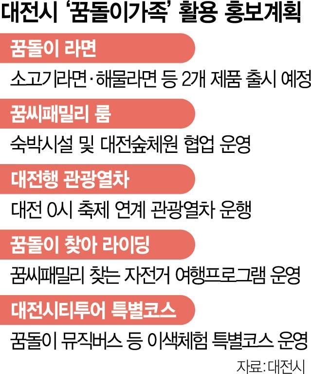 이달 9일에는 ‘꿈돌이 라면’이 정식 출시된다. 꿈돌이 라면은 쇠고기맛과 해물짬뽕맛 등 2종으로 출시되며 대전역 등 대전시 주요 판매처 외에 대전고향사랑기부제 온라인몰에서도 판매 예정이다. 꿈돌이 라면은 지역 캐릭터를 활용한 국내 최초의 라면 굿즈로 대전시와 대전관광공사, 민간업체가 협업해 개발했다.