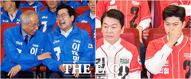 출구조사 발표에 희비 엇갈리는 더불어민주당-국민의힘 [TF사진관]