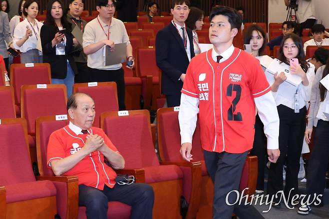| ▲ 김용태 국민의힘 비상대책위원장이 9일 서울 여의도 국회 도서관에 마련된 국민의힘 개표 상황실에서 제21대 대통련 선거 방송3사 출구조사 결과를 지켜 본 뒤 퇴장하고 있다. 왼쪽은 황우여 공동선대위원장. |