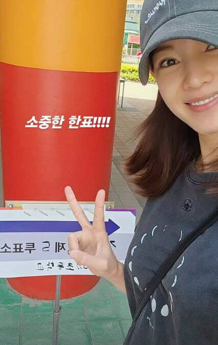 앞서 정가은은 이날 투표를 마친 후 "소중한 한 표!!!"라는 멘트를 남겼다.