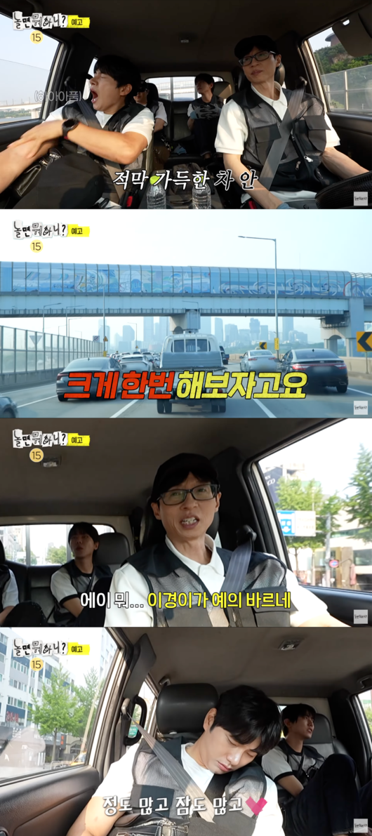 공개된 예고편 속 네 사람은 트럭을 타고 이동 중이었으며, 적막이 가득해 아무런 이야기도 나누지 않고 있었다. 이이경은 분위기를 띄우고자 “크게 한번 해보자고요”라고 했으나, 어느새 잠든 모습을 보여 웃음을 자아냈다. 이를 본 유재석은 “이경이가 예의가 바르네. 형한테 계속 인사를 하네”라고 말했다.