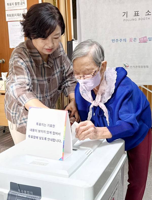 동구 유권자 중 최고령자인 김정자(109) 어르신은 오전 8시51분께 동구 계림경로당에서 투표를 마친 뒤 “새 대통령은 우리나라를 더 좋게 만들어줬으면 한다”고 바람을 전했다.