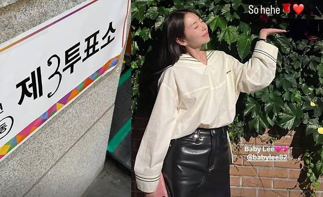 공개된 사진엔 제 21대 대통령 선거를 맞아 투표소를 방문하고 장미꽃 앞에서 포즈를 취한 안소희의 모습이 담겼다.