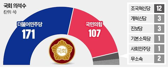 더불어민주당은 171석을 가진 거대 여당으로 변신했고, 국민의힘은 107석의 소수 야당 처지가 됐다.