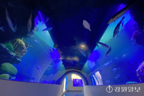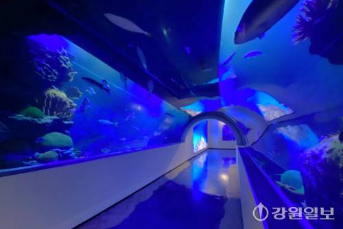 연결다리를 따라 넘어간 수족관동에서는 화진포의 독특한 생태계가 눈길을 사로잡는다. 고성의 대표 어종 전시와 고대 생물 3D 애니메이션, 디지털 스케치, 터널형 수조 등을 통해 다양한 해양생물을 생생하게 체험할 수 있다. 다양한 크기의 수조에서 고성의 바다 생물들을 실제로 관찰하고 디지털 전시를 통해서는 저마다의 상상 속에 있는 바다를 만나볼 수도 있다.