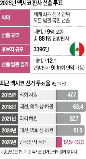 멕시코가 ‘사법부 민주화’를 내세워 실시한 판사 선거에서 대법관 9명 전원을 ‘친정부 후보’가 싹쓸이할 가능성이 큰 것으로 나타났다. 투표율은 평소보다 한참 낮은 10%대에 그쳤다. 삼권분립이 훼손되고 ‘사법의 정치화’만 부추겼다는 지적이 나온다.