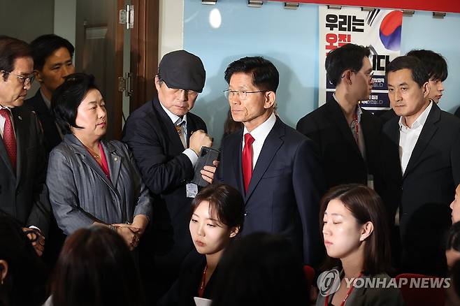 (서울=연합뉴스) 박동주 기자 = 국민의힘 김문수 대선 후보가 4일 서울 여의도 당사에서 열린 기자회견에 참석하고 있다. 2025.6.4 [공동취재]